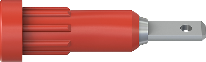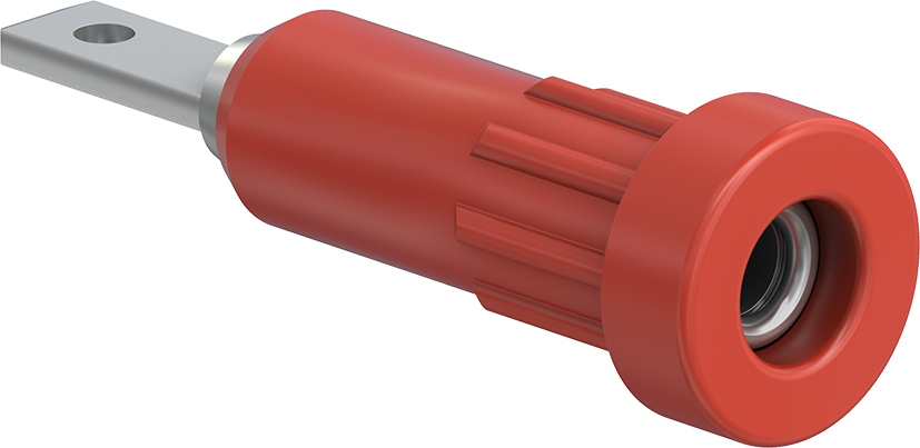 Isoliert, Ø 2 mm mit federnder MULTILAM. Messingdrehteil. Montage durch Einpressen in Bohrungen von Platten oder Gehäusen aus Kunststoff, Metall etc. Flachstecker 2,8 mm x 0,8 mm.