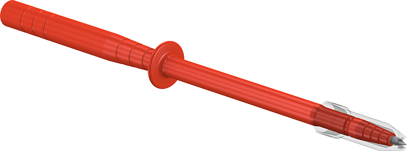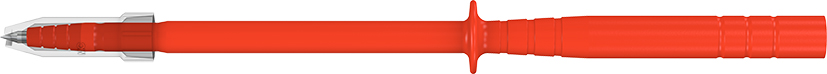 Mit konisch zulaufender, starrer Edelstahlspitze. Zweiseitig abgeflachter Griffschutzkragen. Starre Ø 2 mm-Buchse im Griffteil, geeignet zur Aufnahme federnder Ø 2 mm- Stecker mit starrer Isolierhülse. Lieferung mit Schutzkappe.