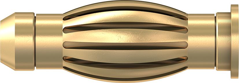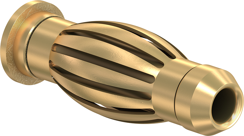 Unisoliert, Ø 4 mm-Stecker aus Messing mit federnder MULTILAM. Starre Ø 2 mm-Buchse, geeignet zur Aufnahme federnder Ø 2 mm-Stecker (beidseitig steckbar).