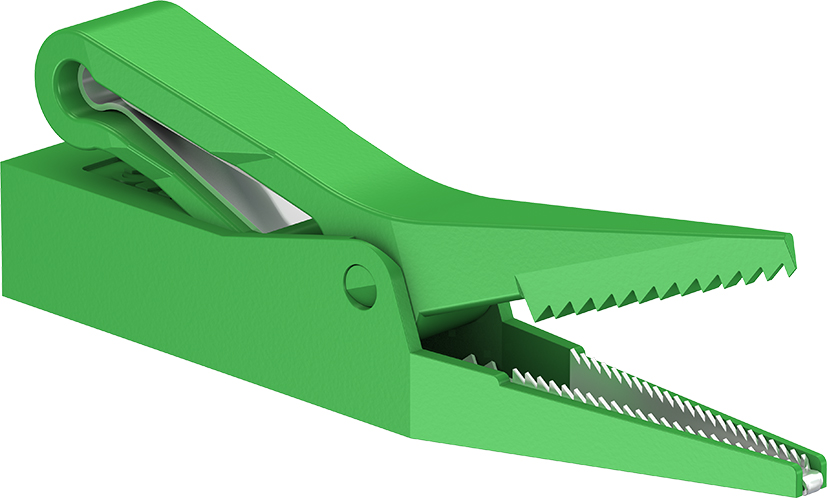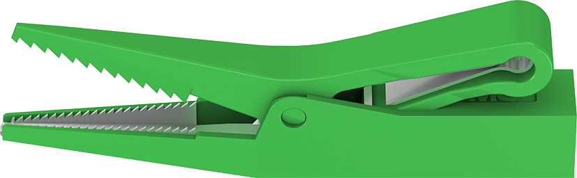 Isoliert, mit starrer Ø 4 mm-Buchse. Messing. Scharf gezahntes, spitz zulaufendes Maul. Greiferoberteil isoliert.